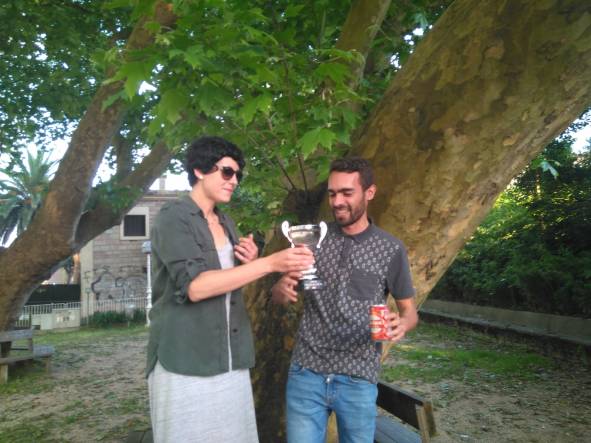 Mientras tanto la copa de la primera edición de Petanca Olafrance esperaba encontrar a su dueñ@.