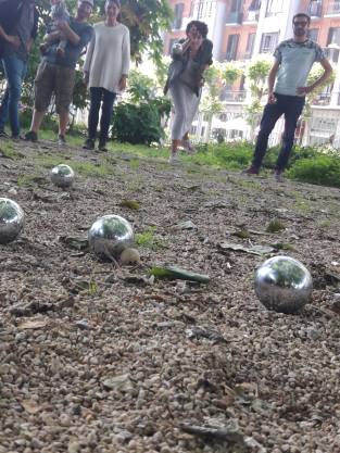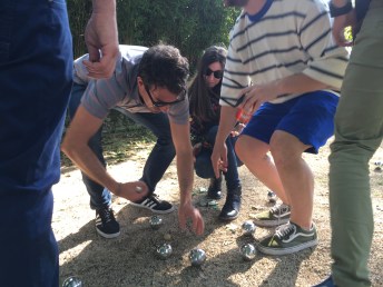 Hubo también las míticas discusiones para saber quien quedó más cerca de la bolita. En Francia llamamos esta bolita «cochonet».